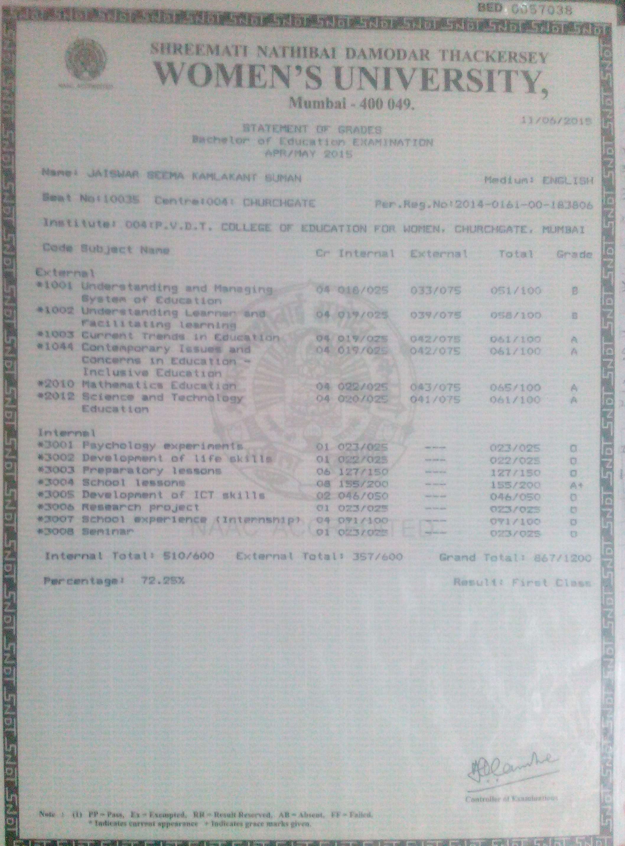 Qualification: Bsc. B.Ed.