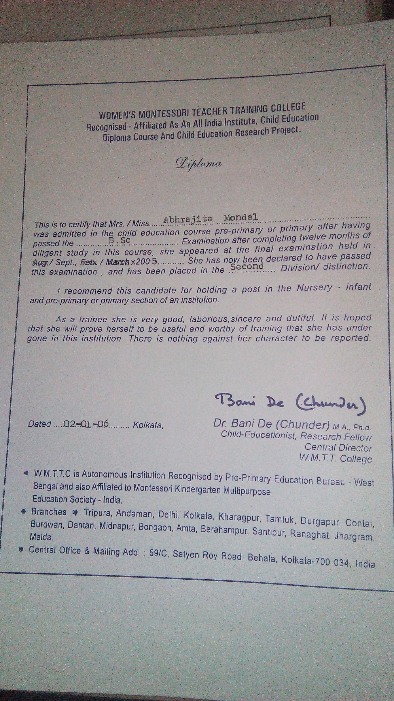 I have total 9.5 yrs cross functional experience ( ref. CV),having a background in Service Sector - 3.5 + yrs in Aviation Sector / CRM /Operations/Ground Handling and having apprx 6 + yrs General Administration ,Facilities, HR management. I am Montessor